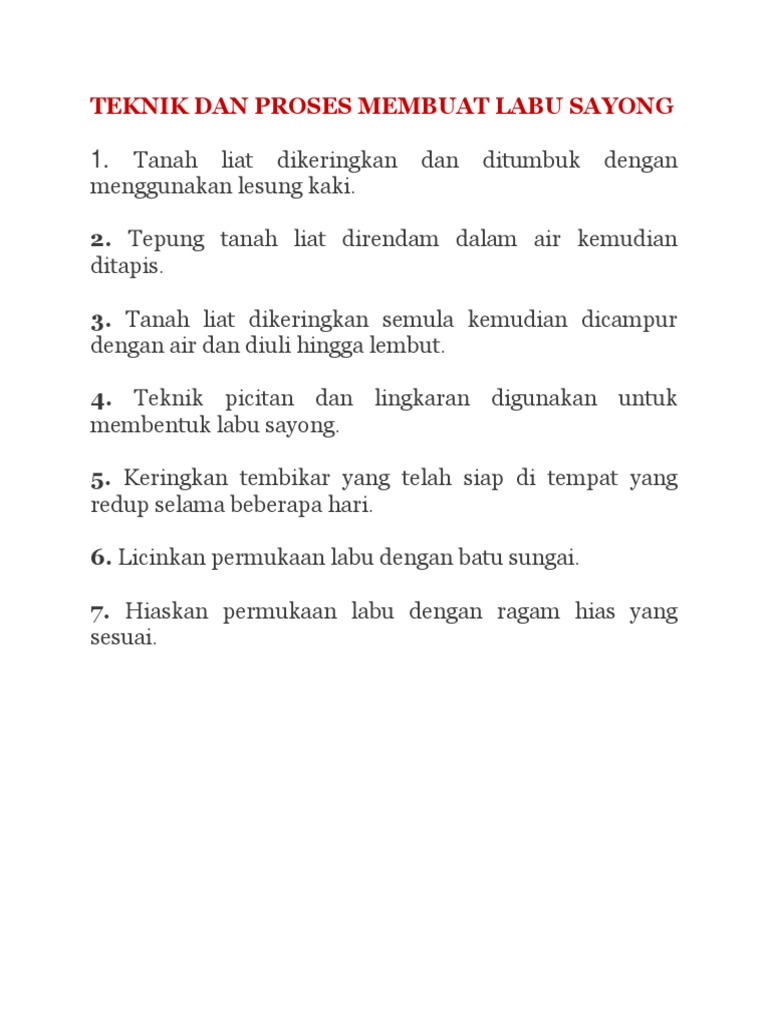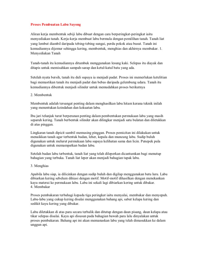 Proses Pembuatan Labu Sayong Aliran Kerja Membentuk Sebiji Labu Dibuat Dengan Cara Berperingkat Peringkat Iaitu Menyediakan from imgv2-2-f.scribdassets.com Maybe you would like to learn more about one of these? We did not find results for: Check spelling or type a new query.